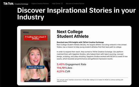 I supported the first TikTok Sports Case Study and the first TikTok Creative Exchange Program case study in North America